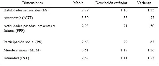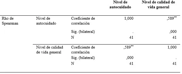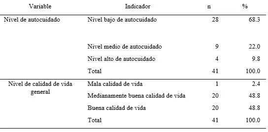 Abstract Introduction: Self-care constitutes a fundamental axis in the stage of old age. Older adults who maintain their independence and autonomy usually have a better perception of their general wellbeing. Objective: To determine the level of self-care and quality of life in older adults attending the Centro Integral de Atención Geriátrica del Cantón Salcedo. Methods: Cross-sectional analytical study, with a population of 59 users, from which a sample of 41 participants was obtained. The Self-Care Agency Assessment Scale and the WHOQOL-OLD test were used, which addressed 6 dimensions, applied in October 2024. Results: Of the 41 older adults, 68.3% presented a low level of self-care. General quality of life was rated as moderately good by 48.8% and good by 48.8% of the participants, which indicated a similar distribution between both ratings; the dimension of death and dying obtained a score above the mean of 3.51, while the dimension of intimacy had the lowest score of 2.67. On the other hand, a moderate direct correlation of 0.589 was found, determining that the higher the level of self-care, the better the participants' perception of quality of life. Conclusion: Despite limitations in self-care including the presence of illness and lack of emotional support, older adults have managed to find satisfaction and well-being in other aspects of their lives. Keywords: Elderly; Geriatrics; Quality of Life; Self Care. |