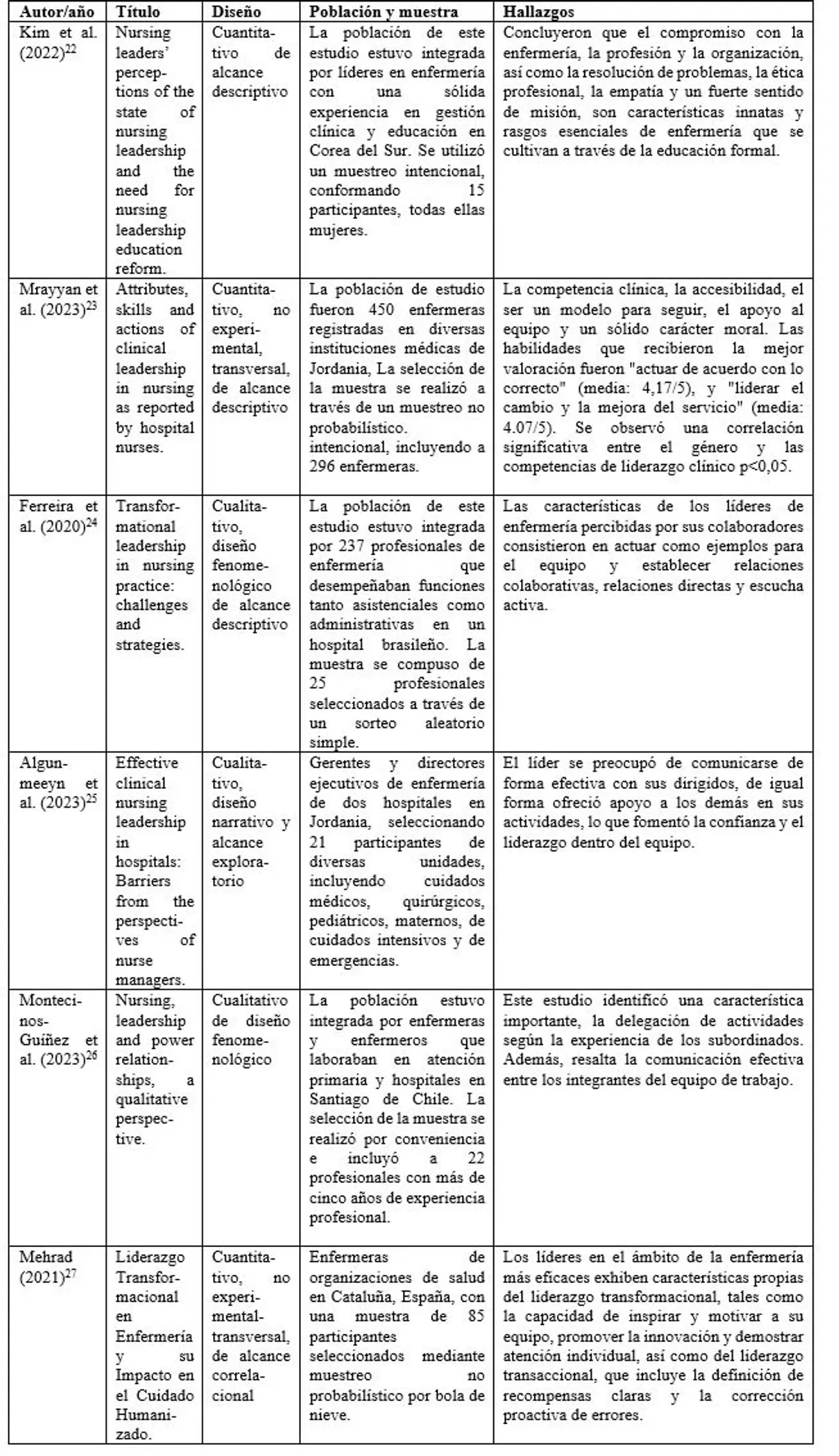 Carrasco Valdez JD, Heredia Nugra SM. Liderazgo de Enfermería y su impacto organizacional en el ámbito hospitalario. Revisión bibliográfica